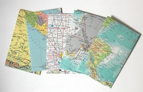 For those of you who still write real letters and have not gone totally digital, there's also a great set of envelopes made from maps.