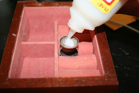 Find a place to secure your ring blank and add a thin layer of Dimensional Magic to the bottom. Note - never shake your Dimensional Magic bottle. It adds bubbles.