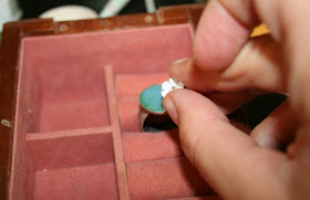 Add another layer of Dimensional Magic on top of your beads and then stick in the embellishment. Let dry in a warm place (NOT under a fan) for several hours. You're done! Repeat with as many rings as possible.